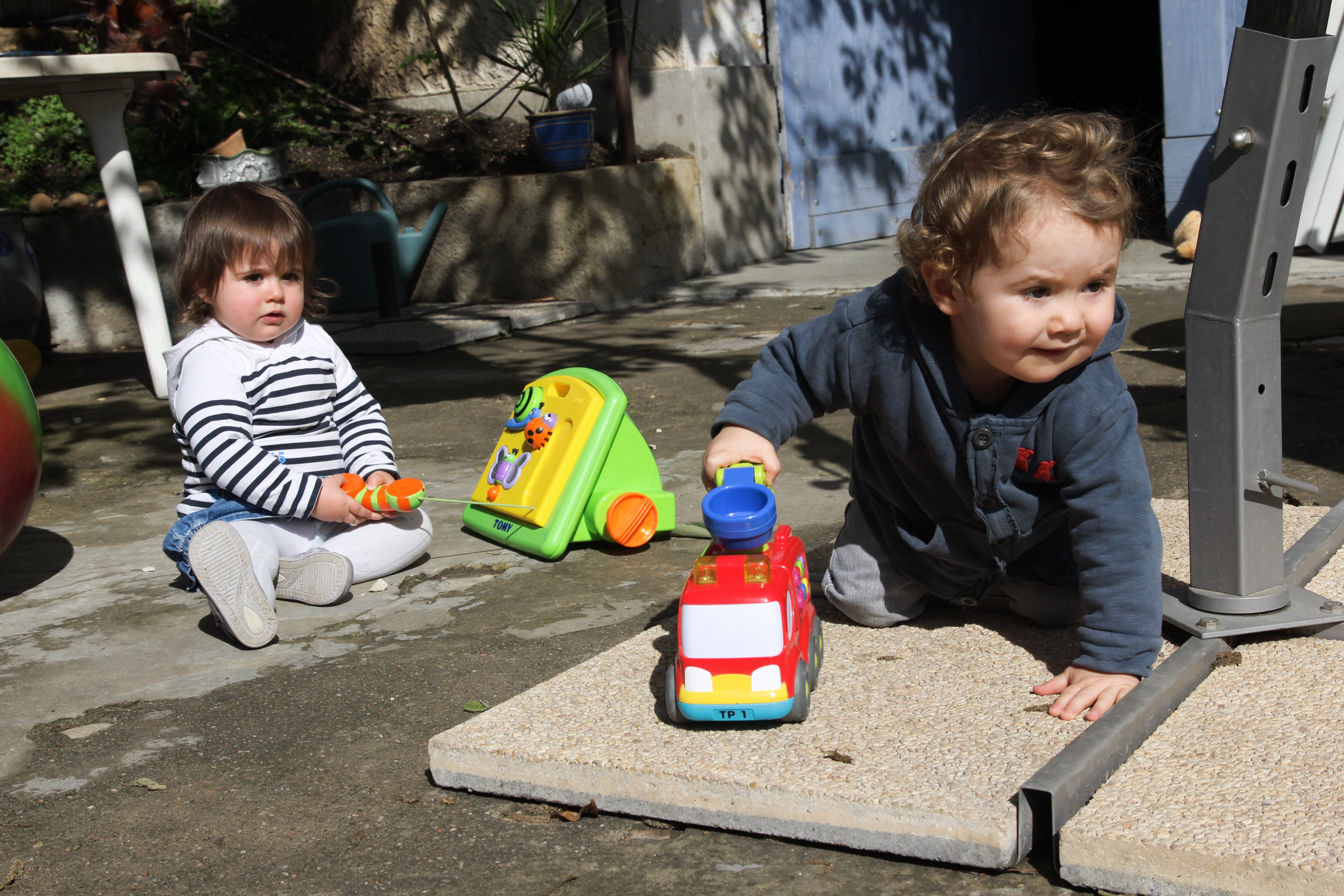 Fleur a adoré passé l’aspirateur, jouer avec le camion pompier, dire “allo” au téléphone. Arthur lui à adoré joué au ballon, mais beaucoup moins de la passer aux autres enfants.