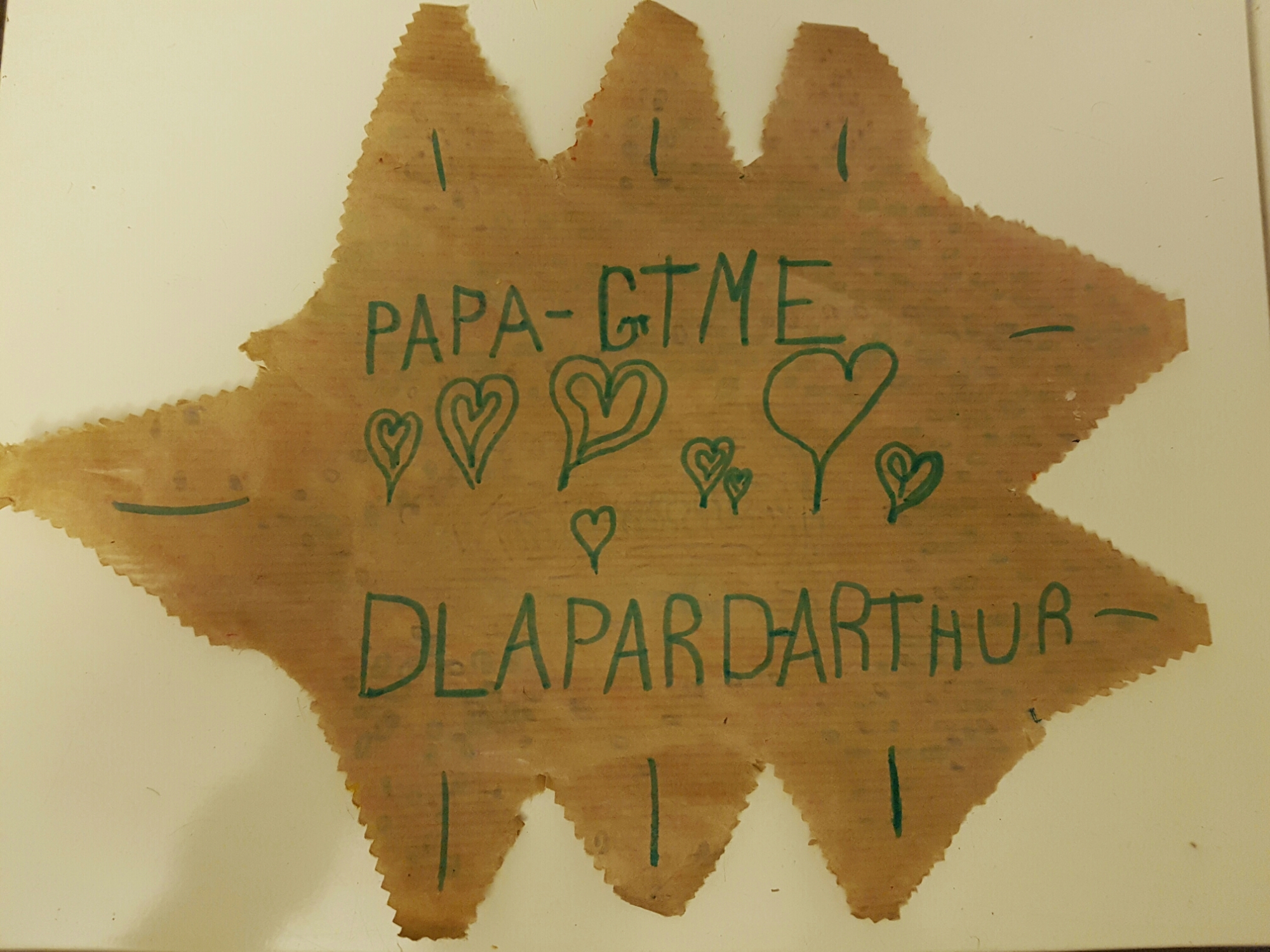 Enfants Déclaration d’amour d’Arthur 11 Apr ’16 Jonathan Leave a comment Il ne sais pas encore lire… Mais il m’a fait la surprise, il a pris le temps, cherché tout seul à l’aide des sons qu’il entendait à faire cette déclaration d’amour à son papa… J’en suis tout ému 🙂
