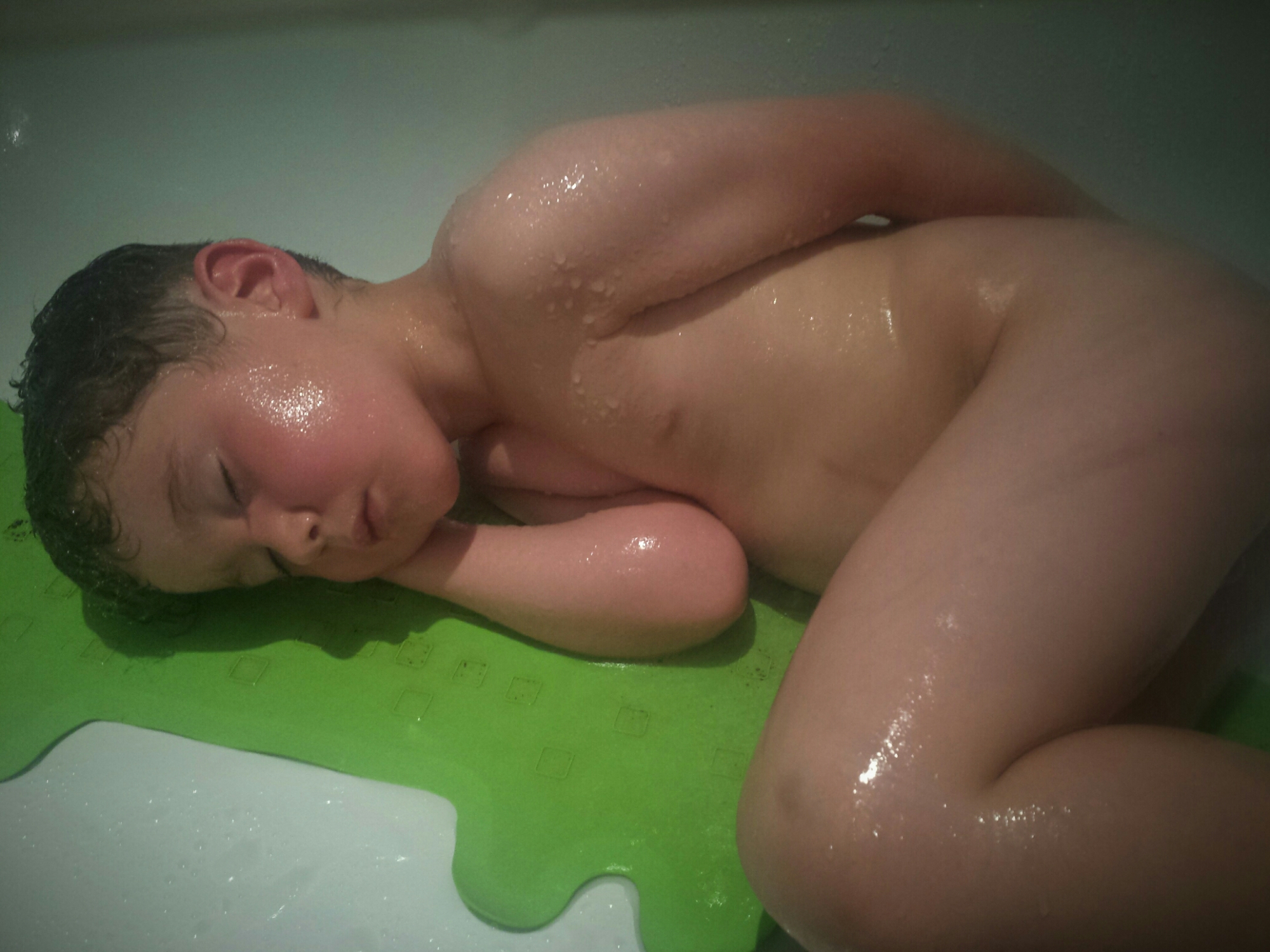 Comme son père, Arthur aime dormir dans la douche