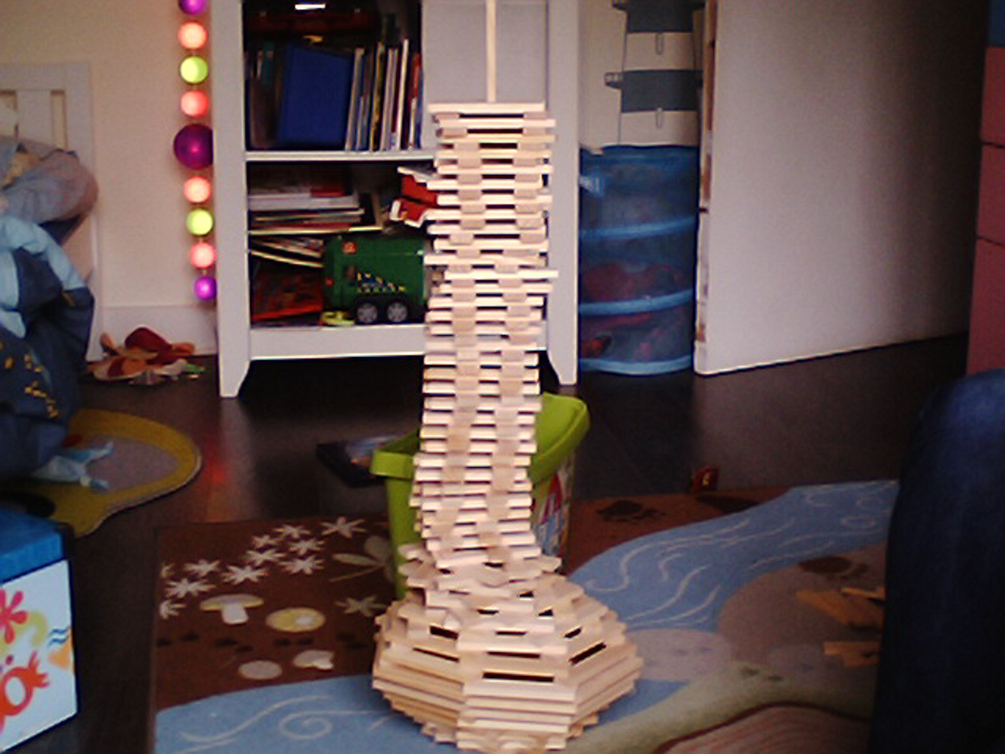 Ni une ni 2, mon petit bonhomme se met à l’ouvrage, courageux, il regarde comment faire et il comprends tout de suite… Après un premier accident sur le chantier (il a bousculé sa tour en se tournant… et patatra…) Papa console, et Arthur se remet à l’oeuvre plus motivé que jamais…