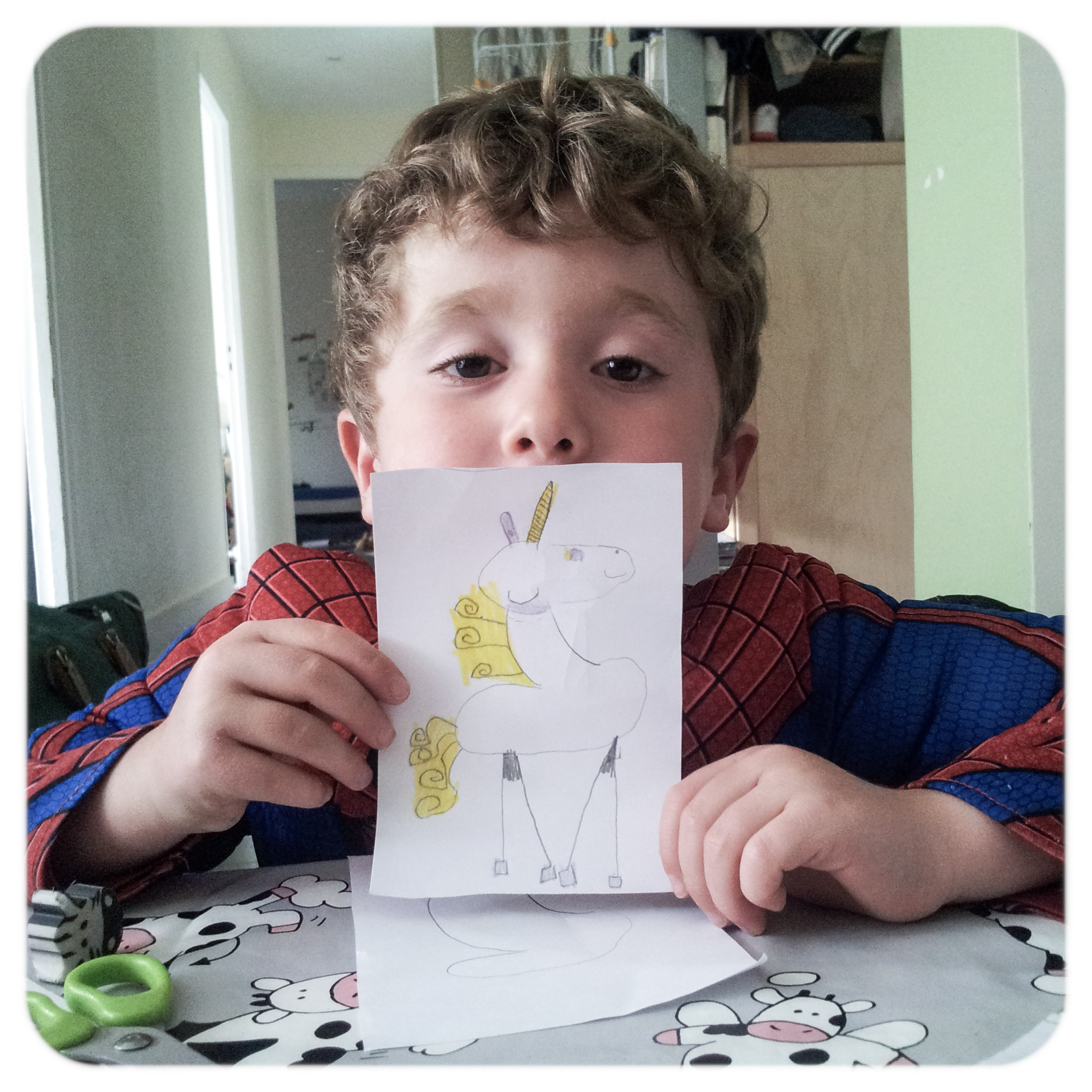 Enfants, Photos Licorne 2 May ’15 Jonathan Leave a comment Arthur a choisi de prendre à l’école un livre pour apprendre à dessiner. Courageusement il a prit une feuille blanche et son crayon pour dessiner… sa première licorne ^^
